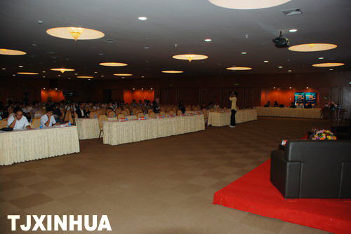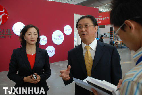 新华社记者采访天津市政府副秘书长陈宗胜及本次论坛主办方滨海会展中心总经理宋颖怡