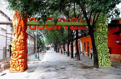 据介绍,友谊风情街是利用友谊路上的长城电视机厂废旧厂房改造而成。总占地面积22000平方米,总投资1000万元。整个街区旨在通过各种浮雕、立面着色体现东方、欧洲、非洲等3种艺术风格。该风情街被分为酒吧街、品牌服装区、特色店等三个部分。