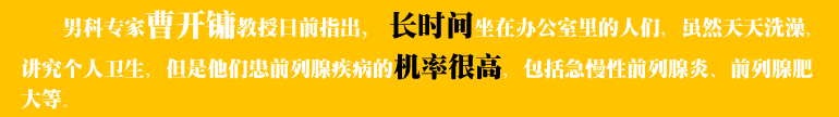 曹开镛教授根据他多年的医疗实践,他开出了运动+晒太阳+好心情+规律生活的预防良策。他说,对于包括男科疾病在内的办公室病应该特别注意。